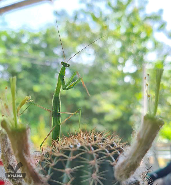 ตั๊กแตนมาเฝ้าดอกไม้