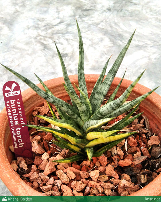 Sansevieria bunlue torch หรือชื่อไทยว่า ลิ้นมังกรเพลิงสะบัด ลิ้นมังกรทรงสวย ลดความแข็ง ออกไปทางพริ้ว ๆ เป็นไม้ไทยที่อยู่ในตลาดมานานแล้ว หาไม้ด่างสวย ๆ ราคาไม่แพงได้ไม่ยากนัก ปลูกเลี้ยงก็ง่าย ทนแดดทนฝน ที่สวนเราก็วางกลางทุ่งกันเลย ต้นด่างก็สามารถเลี้ยงกลางแจ้งได้