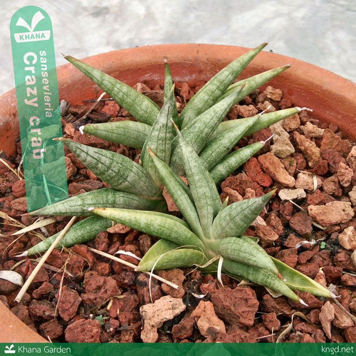 Sansevieria crazy crab ลิ้นมังกรเครซี่แครบ, ลิ้นมังกรปูคลั่ง (แปลเอาเอง) ลิ้นมังกรขนาดเล็ก ทรงพัด เลี้ยงแดดร้อยฝนร้อยก็โตได้เท่านี้แหละ พอออกหน่อมาก็โตเท่าต้นแม่ ได้เท่านี้จริง ๆ ถ้าเลี้ยงในร่มน่าจะใหญ่กว่านี้