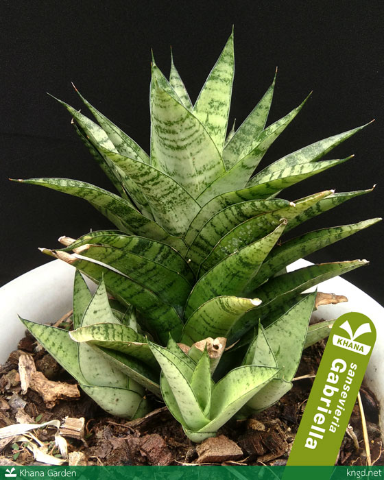 Sansevieria gabriella ลิ้นมังกรกาเบรียลล่า ต้นนี้เป็นแบบด่างน้อยมาก ส่วนใหญ่ในตลาดที่เขานิยมขายกันจะมีด่างขาวกับด่างเหลือง ฟอร์มของกาเบรียลล่าจะดูกระชับกว่าลิ้นมังกรคอโดว่า ถ้าต้นเขียวจะแยกกันง่าย แต่ถ้าด่างก็จะคล้าย ๆ กับหลายต้นเลยแหละ