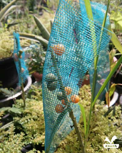 ป้องกันนกกินเมล็ดลิ้นมังกร ปกป้องเมล็ดลิ้นมังกรจากนก ช่วงแรกไม่ค่อยได้ป้องกันไว้ เพราะเก็บที่สุกทุกวัน ต่อมาเริ่มโดนนกสอยไปบ้าง ก็เสียดายอยู่เหมือนกัน สุดท้ายก็ต้องใช้วิธีป้องกันเมล็ดแบบที่เขาทำกัน เพราะดูแล้วถ้าไม่ป้องกัน น่าจะหายไปหมด ที่ทำนี่ก็ทำไว้แบบลวก… ป้องกันนกกินเมล็ดลิ้นมังกร