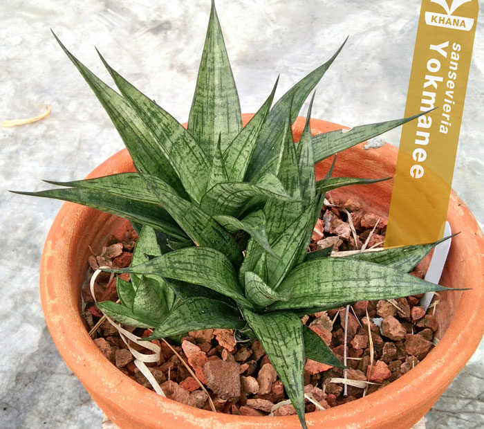 Sansevieria yokmanee (ลิ้นมังกรหยกมณี) ลิ้นมังกรใบบาง สีเขียวสวย ฟอร์มที่เห็นเป็นฟอร์มแดดร้อยฝนร้อย ถ้าเลี้ยงในร่มน่าจะยืดกว่านี้เล็กน้อย ต้นนี้แข็งแรง เป็นทรงพุ่มได้ในเวลาไม่นาน ขยันแตกหน่อ… Sansevieria yokmanee