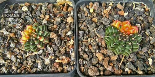 หลังจากที่สวนคณาทดลองยิมโนไร้หนามมาปลูก สักพักก็จะหายิมโนไร้หนามด่างมาปลูกด้วย ก็เคยได้ยินอยู่ว่า ยิมโนไร้หนามที่เสถียรนั้นหายาก ส่วนใหญ่จะไม่เสถียร โตมาก็มีหนาม ซึ่งเราก็ได้มาเป็นข้อมูล จนกระทั่ง…