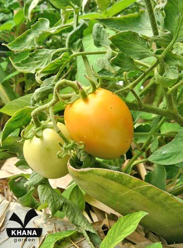 ปกติที่สวนจะปลูกมะเขือเทศไว้กิน ปลูกตอนหน้าหนาวก็ได้ผลดี ผลสุกแดง ไม่ค่อยมีตำหนิ แต่พอมาช่วงฝนตกชุก หน้าร้อนปีนี้ยังกับหน้าฝน มะเขือเทศที่ให้ผลผลิตดีก็ได้น้อยลง แถมต้องเก็บตั้งแต่ยังเหลือง ๆ ส้ม ๆ เพราะถ้ารอไปเก็บตอนสีแดง ไม่แมลงเจาะพรุน ลูกก็เน่าล่ะจ้า
